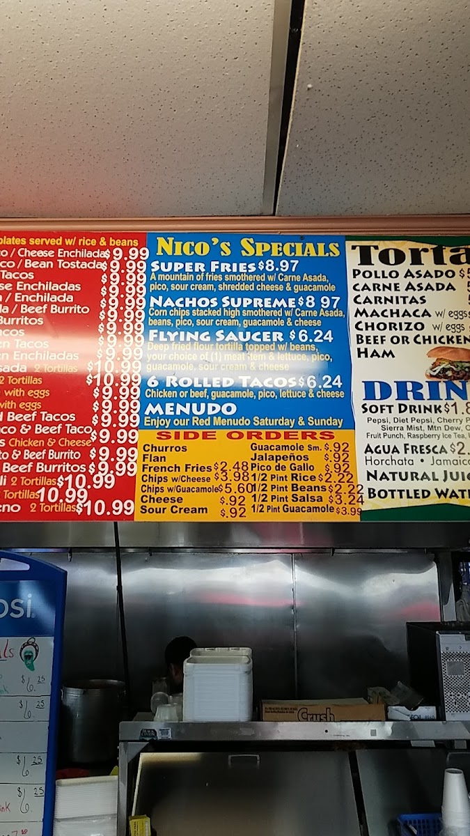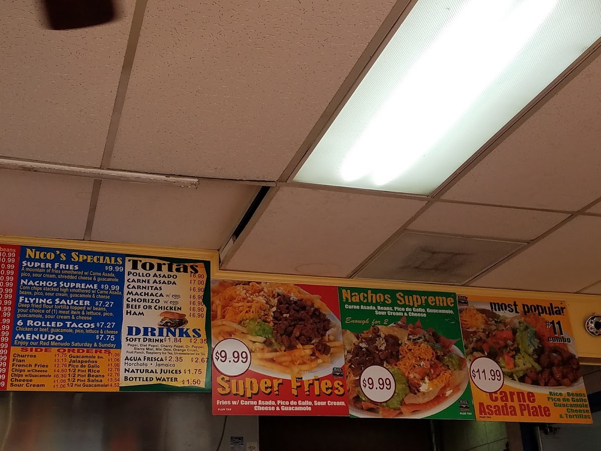 A must-try is the Super Fries Special, loaded with carne asada and fresh toppings, offering a feast for your taste buds at just $10.15. Customer reviews praise the friendly staff and the consistently delicious food, creating a welcoming atmosphere that keeps folks returning. With generous portions and a commitment to quality, Nico's ensures every visit feels special—an experience you won't want to miss!